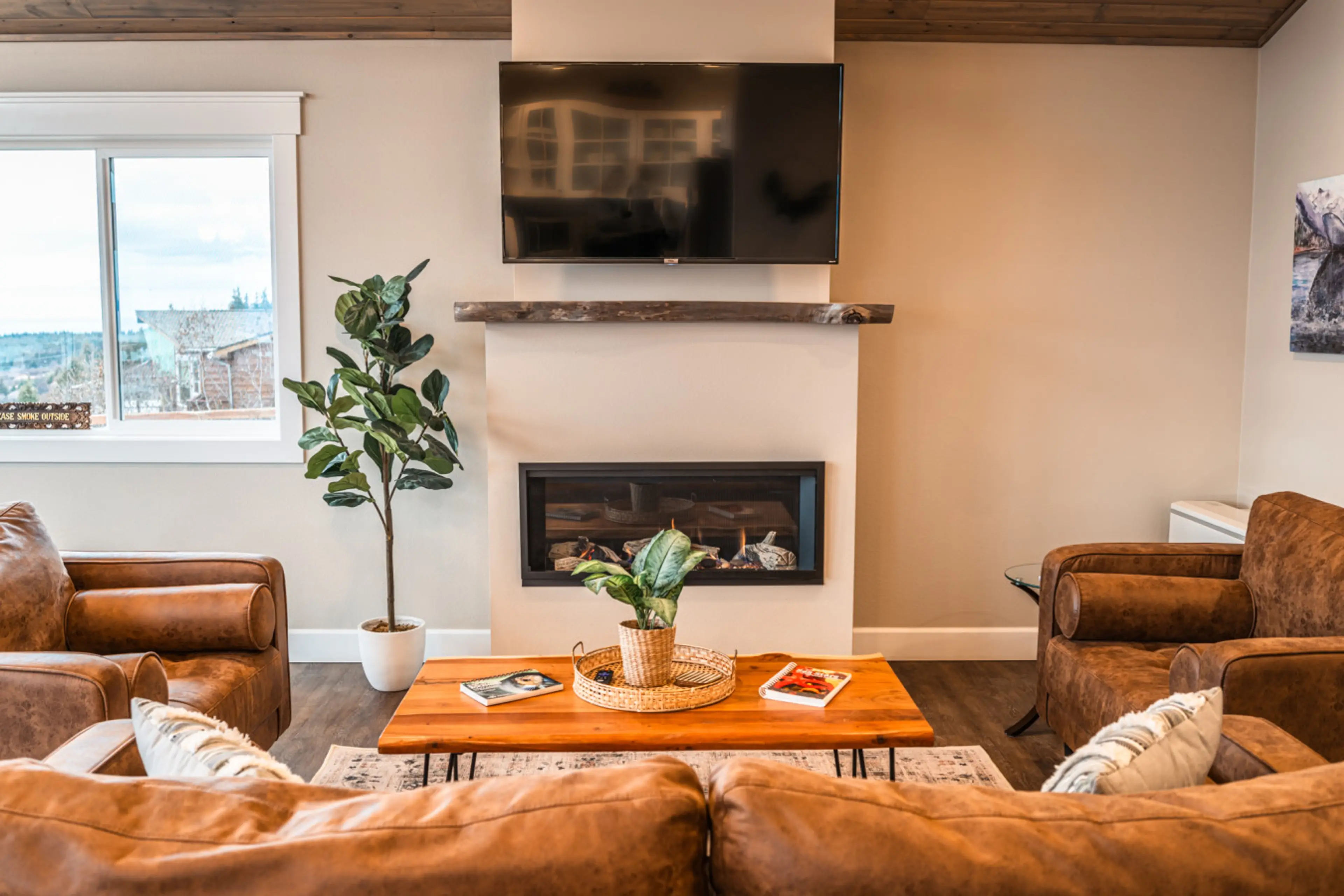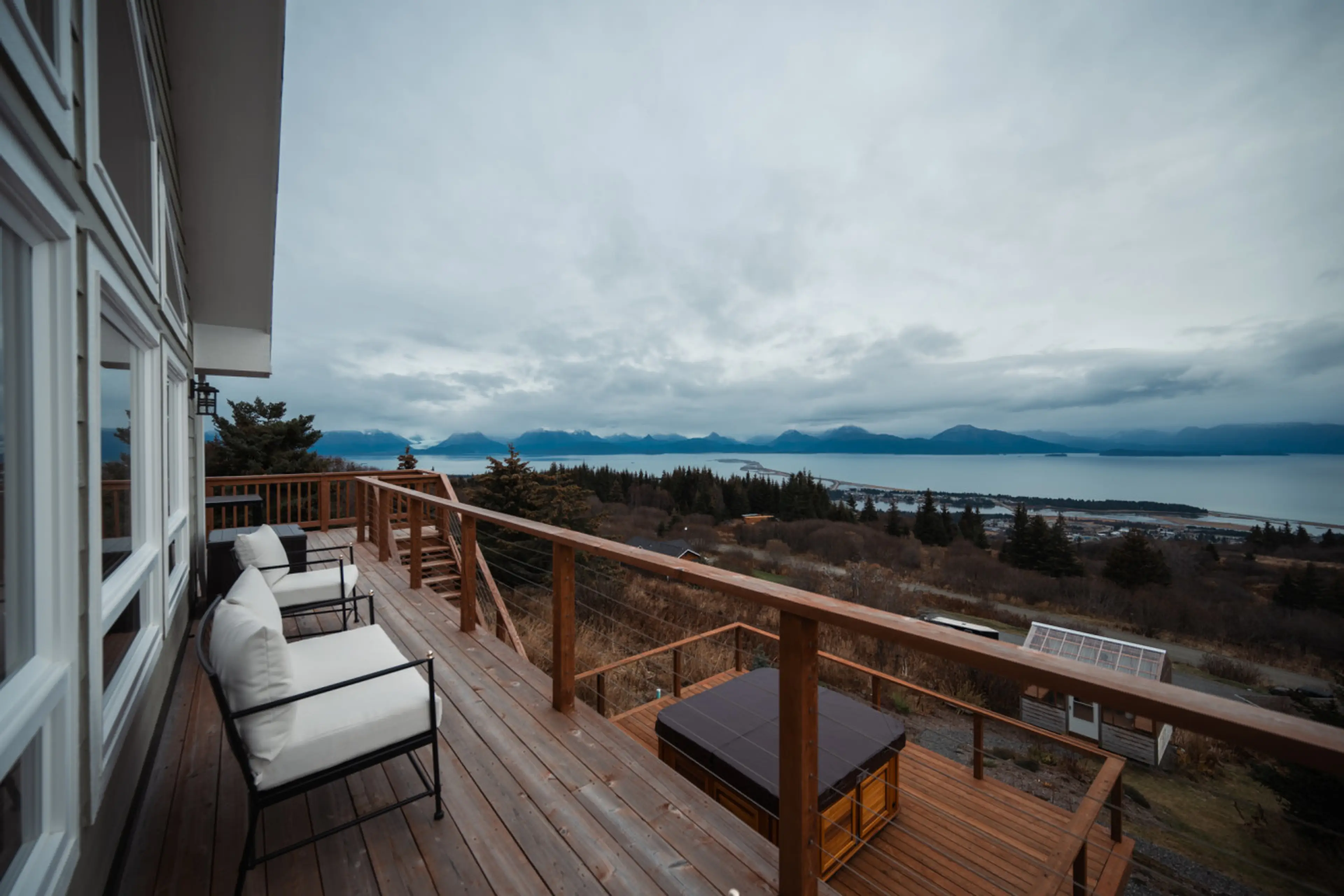 You don't need a group to enjoy this beautiful home! Perfect for singles or couples, you can rent the main floor of the Bayview Oasis home including laundry access in the garage space. This home boasts amazing views of Kachemak Bay, the Kenai Mountains & Homer Spit with a modern kitchen, gas firepla...
